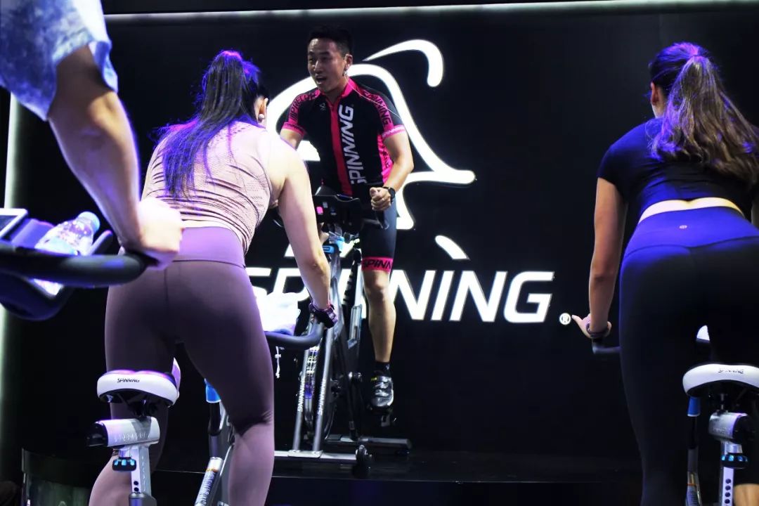 再来到Precor必确展台上的Spinning®体验区✿ღღ,两天的骑行课程场场爆满✿ღღ,四名Spinning®明星骑行教练为大家带来不同的骑行主题✿ღღ,让每一个训练者都感到到身体与灵魂一起骑行在路上的畅快感受✿ღღ。
