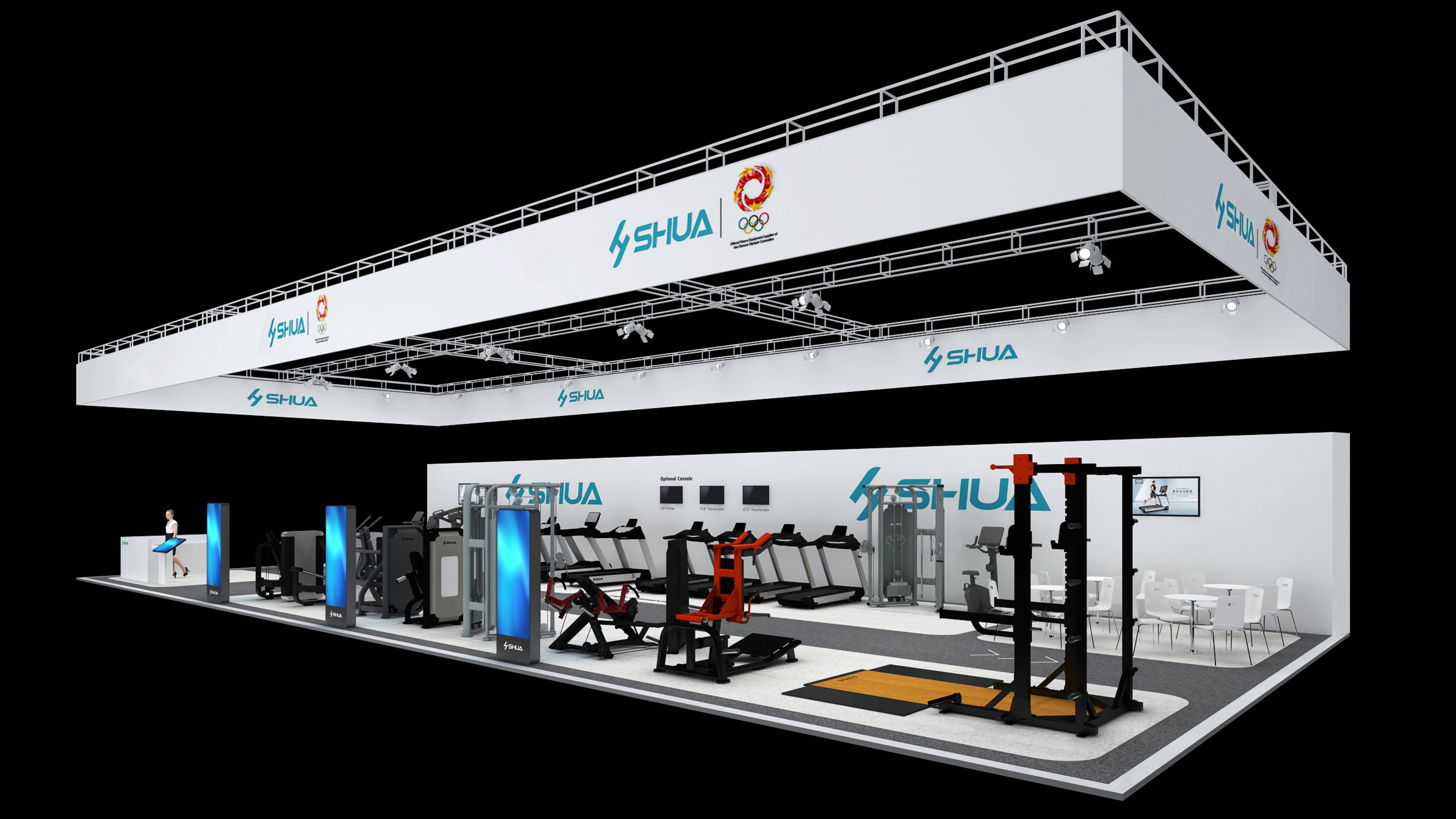 此次的展位面积是舒华历年参展FIBO中最大的一次◈◈◈★,工业风空间设计理念◈◈◈★,将舒华LOGO◈◈◈★、品牌文化巧妙融入,整体简约又显大气◈◈◈★。